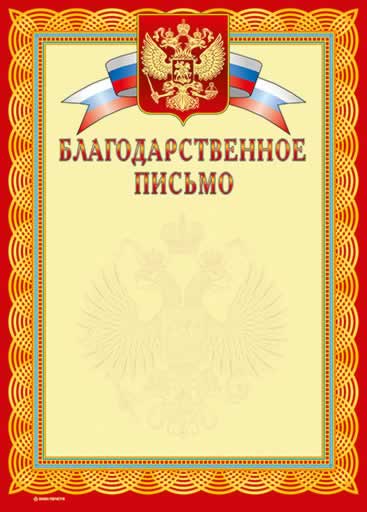 | Вид изделия: | Благодарственное письмо |