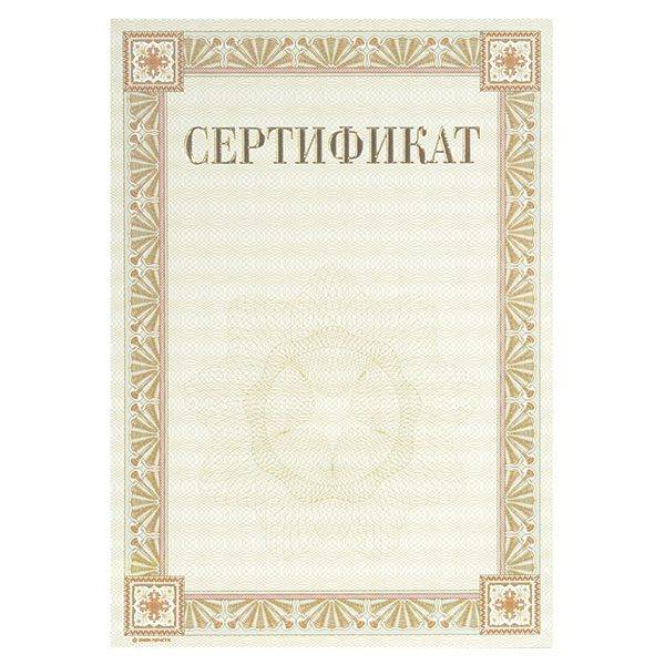 Сертификат Диона А4, бежевая, тиснение фольгой и конгрев