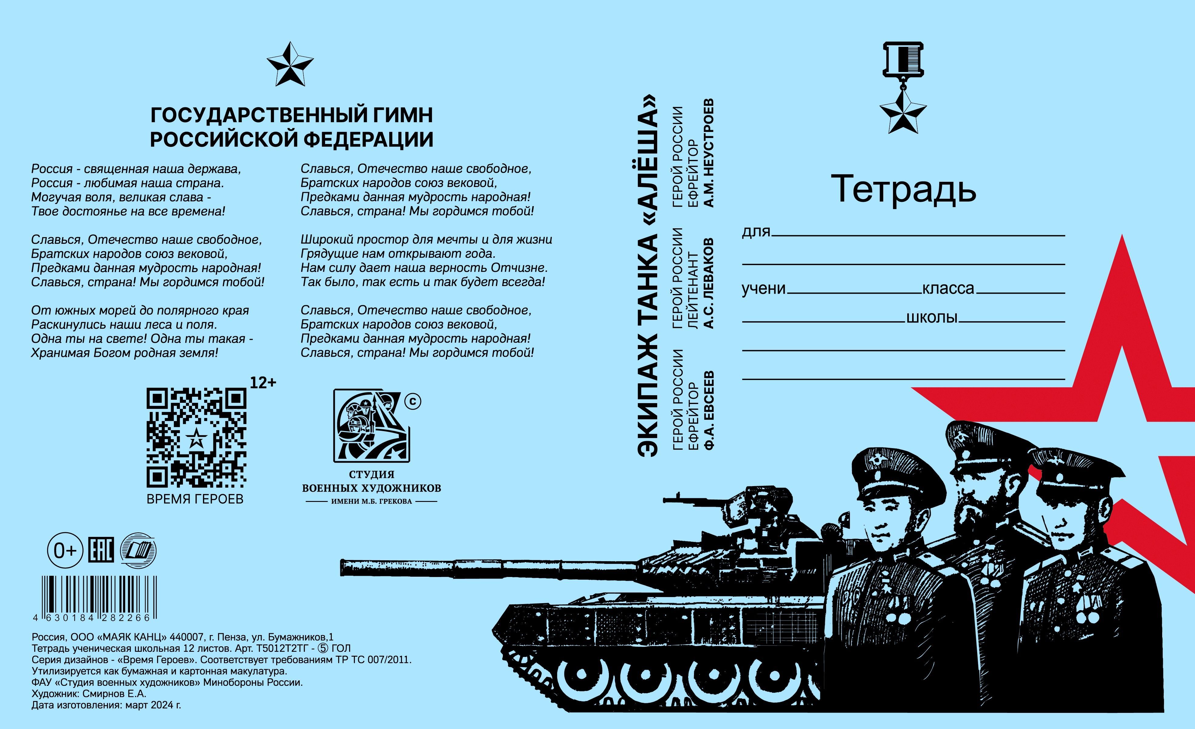 Тетрадь школьная 12 листов в клетку. Формат 170х203 (+/- 3), на скрепке. Внутренний блок - 60,0 (+/- 3,0) г/м. Материал обложки - бумага обложечная 80 г/м.