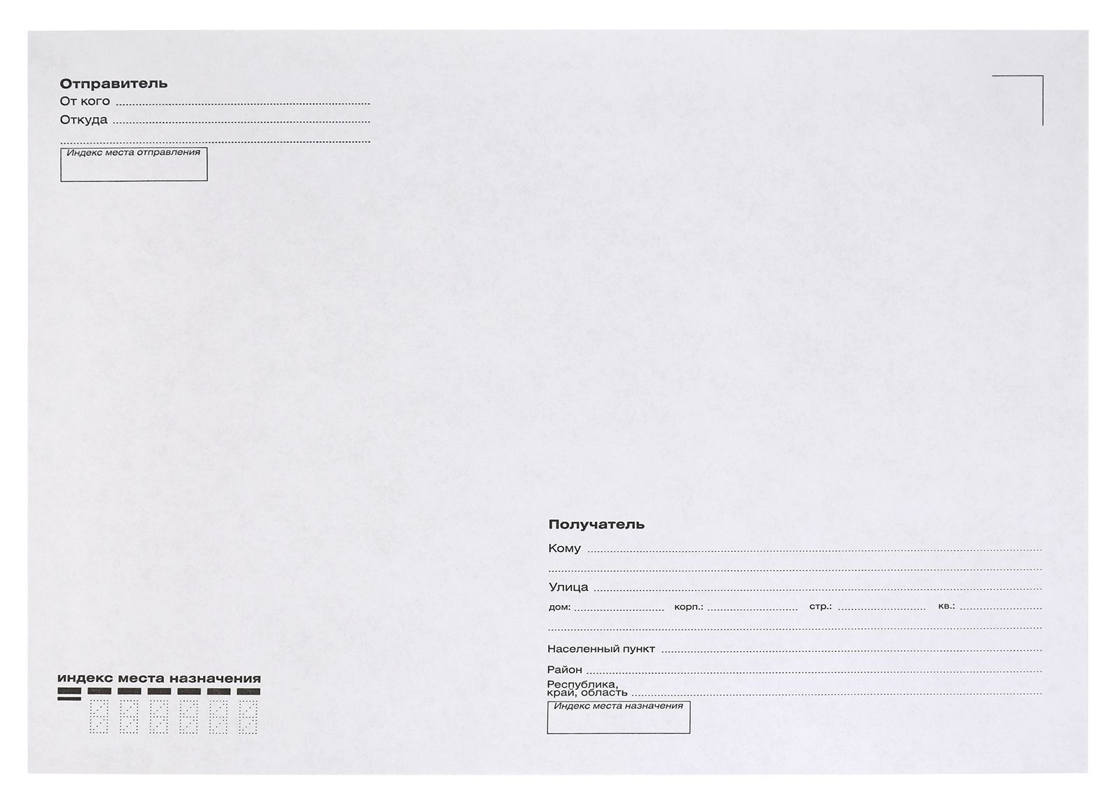 | Форма почтовых пакетов: | плоские |