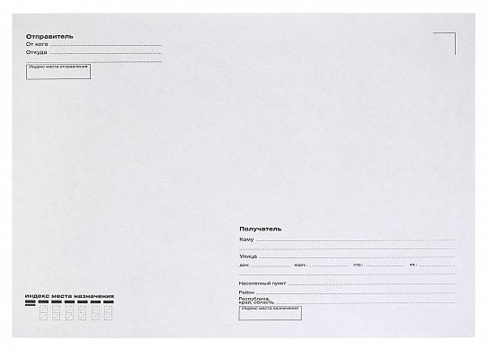 Конверт С4 размером 229х324 мм с клевым слоем декстрин, выполнен с адресной сеткой "Куда-Кому". В такой конверт помещаются толстые вложения А4 формата. Материал: евробумага 100% белизна.