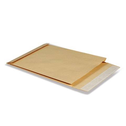 Пакет выполнен из крафт-бумаги 130 г/м2, имеет клеевое нанесение типа стрип (отрывная силиконовая лента), боковое и донное расширение 40 мм. Предназначен для почтовых отправлений различной многостраничной документации и любых объемных вложений.