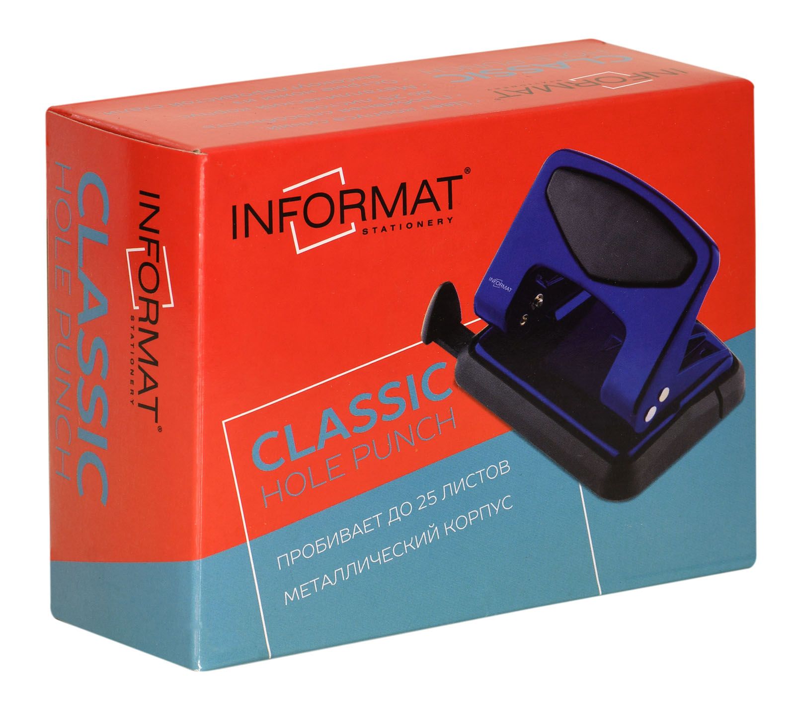 Дырокол серии Classic — универсальный офисный инструмент. Металлический корпус и механизм. Пластиковая вставка для удобства использования. Линейка деления на форматы, съемный пластиковый контейнер для обрезков. Пробивная мощность — 25 листов. Цвет - синий.