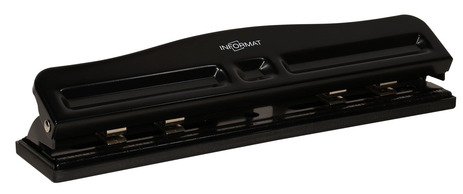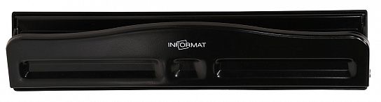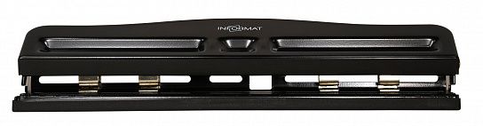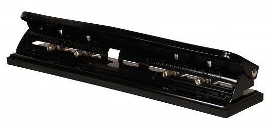 Полностью металлический офисный дырокол на 4 отверстия диаметром 6 мм, между отверстиями можно регулировать расстояние. Съемный пластиковый контейнер для обрезков не царапает поверхность стола и легко очищается. Мощность — до 12 листов. Цвет - черный.