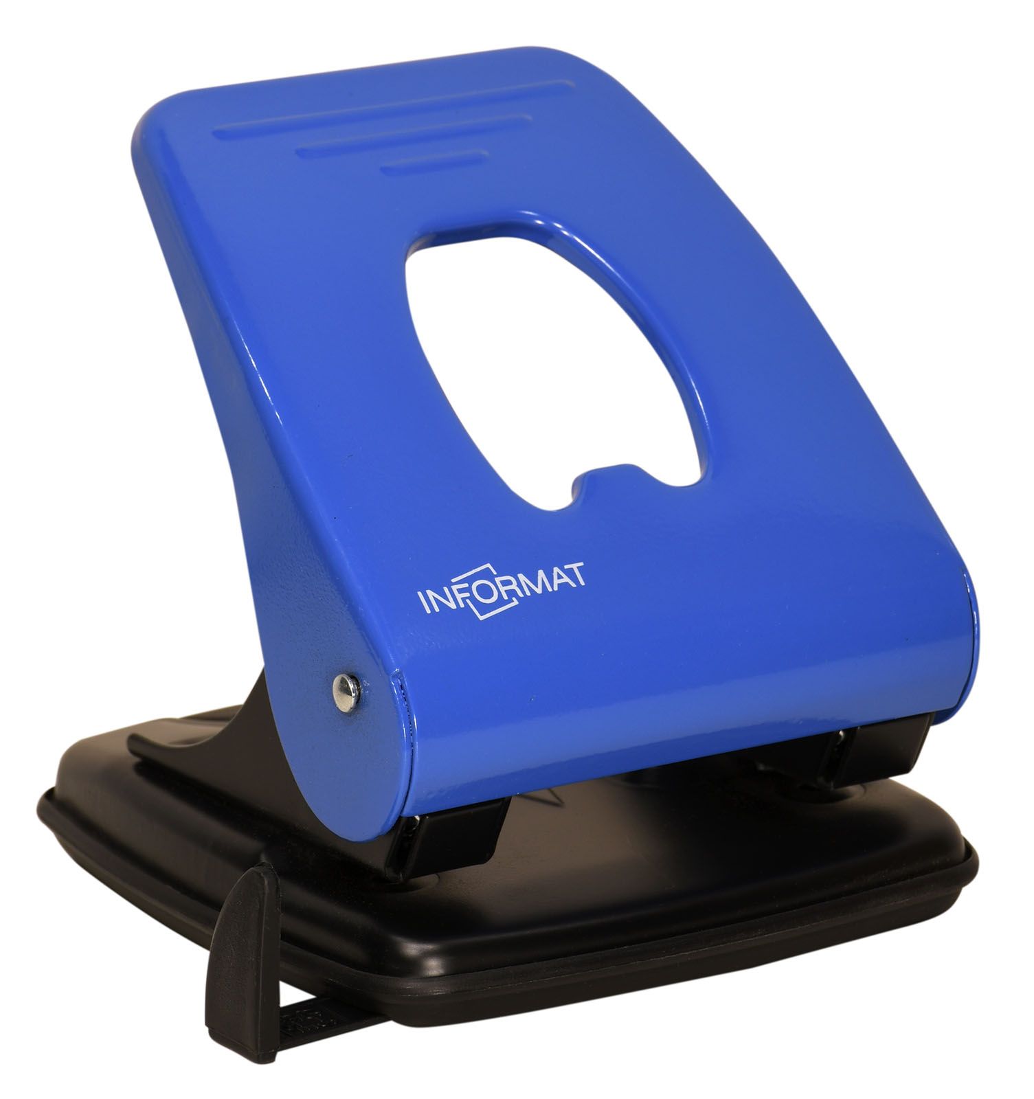 Дырокол серии Office — универсальный офисный инструмент. Металлический корпус и механизм. Линейка деления на форматы, съемный пластиковый контейнер для обрезков. Пробивная мощность — 40 листов. Цвет - синий.