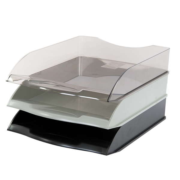 Лоток горизонтальный изготовлен из прочного пластика, предназначен для хранения и сортировки документов. В собранном виде компактно размещается на столе, имеет вертикальный принцип сборки. Габариты: 340х250х75 мм.