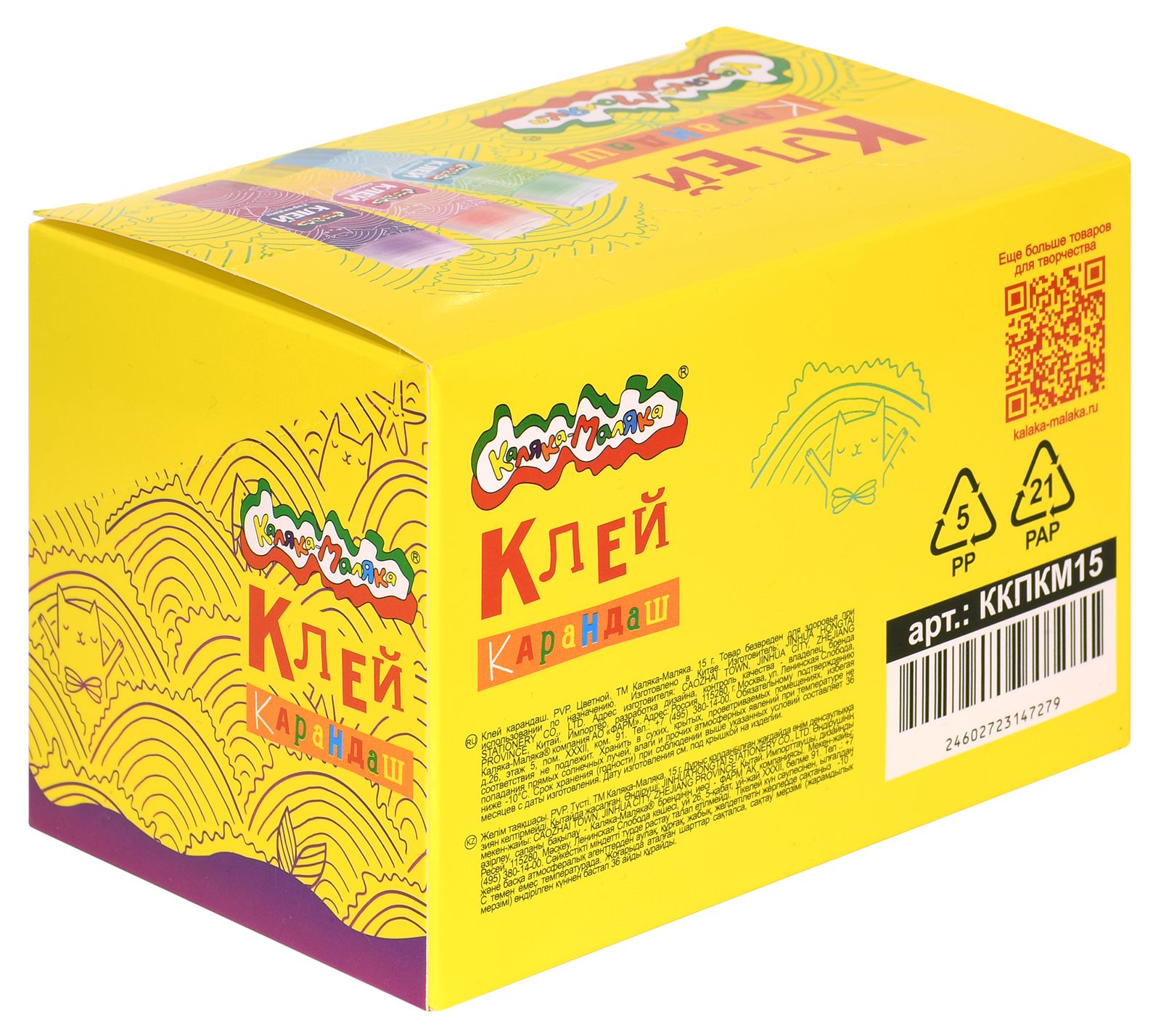Клей-карандаш Каляка-Маляка экономичен в расходе, не растекается и не пачкает руки, одежду, предметы. Состав на основе ПВП нетоксичен, не имеет неприятного запаха, быстро схватывается и высыхает. Подходит для соединения бумажных и картонных листов. Клеящее вещество легко смывается водой.