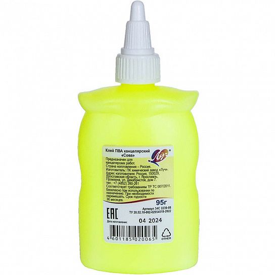 Клей предназначен для канцелярских работ, для склеивания бумаги, картона, дерева, ткани. При высыхании не оставляет следов, эластичен. Имеет высокое содержание клеевого вещества, экономичен в использовании.