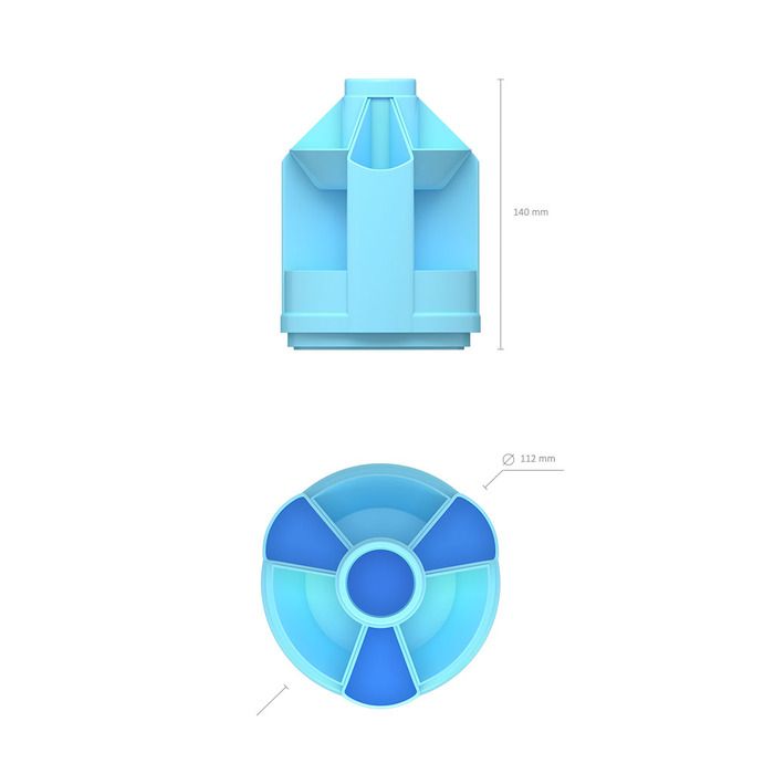 Подставка для удобного хранения настольных принадлежностей. Оснащена вращающимся механизмом и изготовлена из высококачественного пластика.