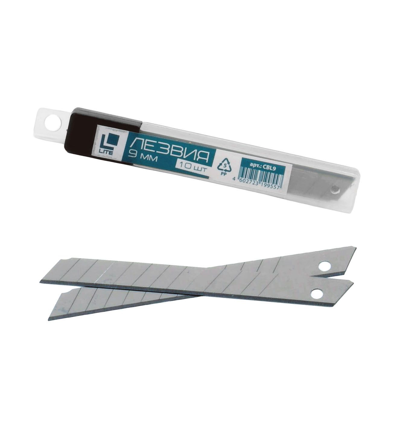 Сегментированное износостойкое стальное лезвие с двухсторонней заточкой для канцелярского ножа. Поставляется по 10 лезвий в пластиковом футляре для безопасного хранения.