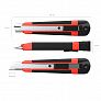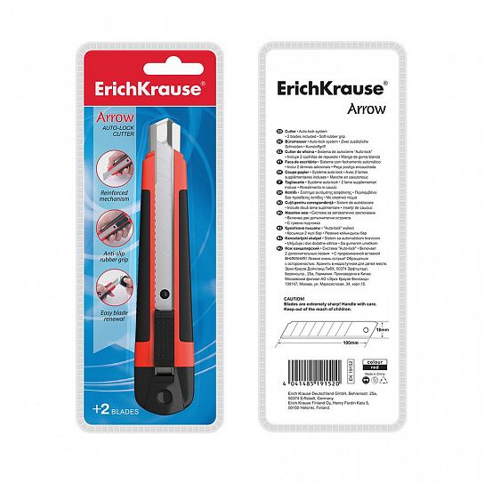 Нож канцелярский с автоматической системой фиксации лезвия auto-lock. С противоскользящими резиновыми вставками на корпусе и специальной насадкой для безопасного отделения сегмента лезвия. Ширина лезвия — 18 мм. Упаковка — двойной блистер.