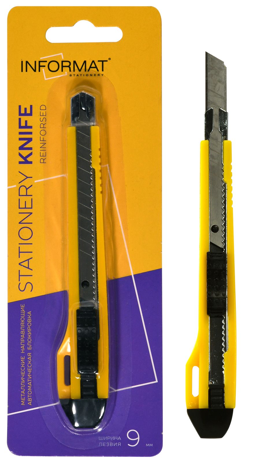 Нож канцелярский усиленный в блистере, с металлическими направляющими. Лезвие из высококачественной стали, выдвижное, многосекционное.