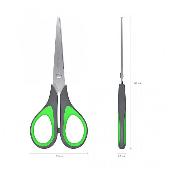 Ножницы с лезвиями из высококачественной нержавеющей стали с улучшенной двойной заточкой, повышающую легкость резки при максимальном количестве листов. Ручки классической формы с противоскользящими резиновыми вставками изготовлены из ударопрочного пластика. Товар поставляется в нескольких вариантах цвета/дизайна без возможности выбора.