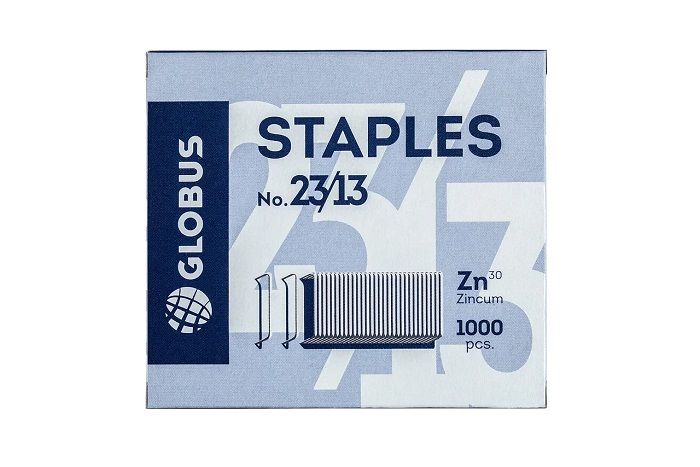 Скобы для степлера № 23/13 выполнены из качественного металла с цинковым покрытием. Предназначены для степлеров со сшивающей способностью до 100 листов (для бумаги толщиной 0,07 и 0,08 мм).В картонной упаковке 1000 скоб.