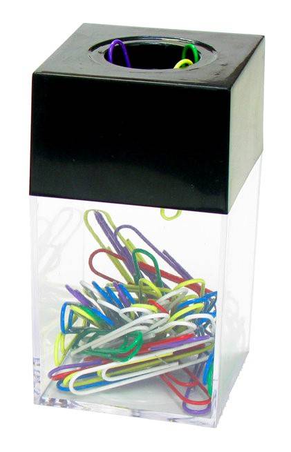 Диспенсер вертикальный, прямоугольной формы с магнитом. Выполнен из черного и прозрачного пластика. В комплект входят 70 цветных скрепок, длина скрепок 50 мм. Диспенсер помогает поддерживать порядок на рабочем месте.