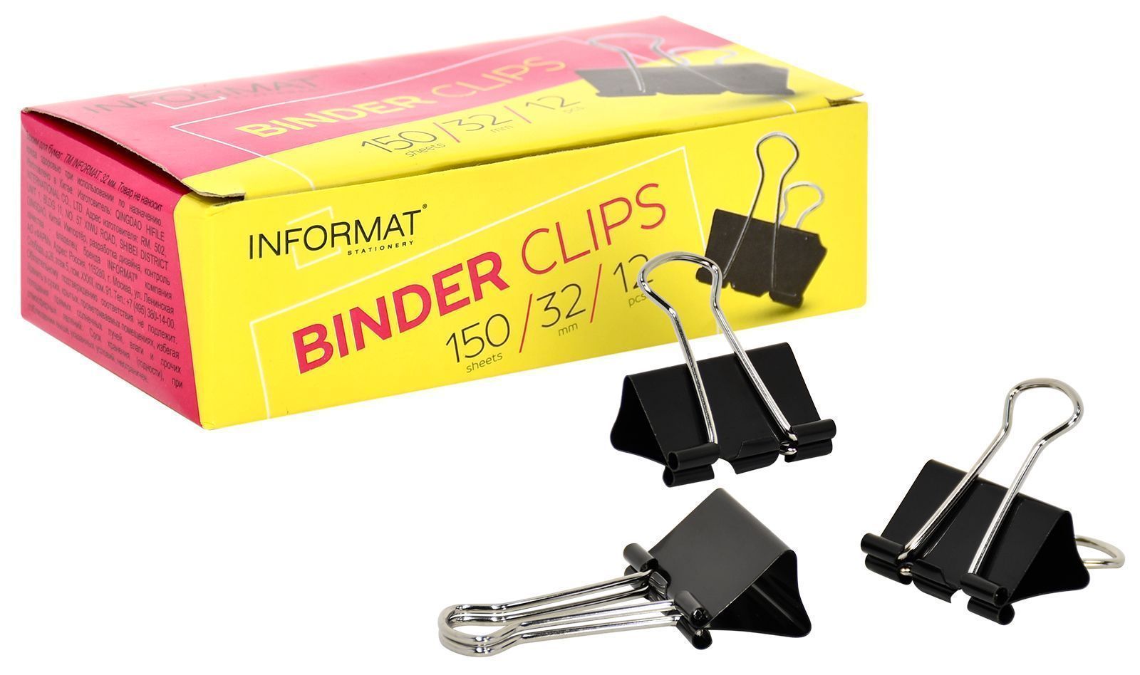 Зажимы INFORMAT 32 мм черн. металл 12 шт/упак