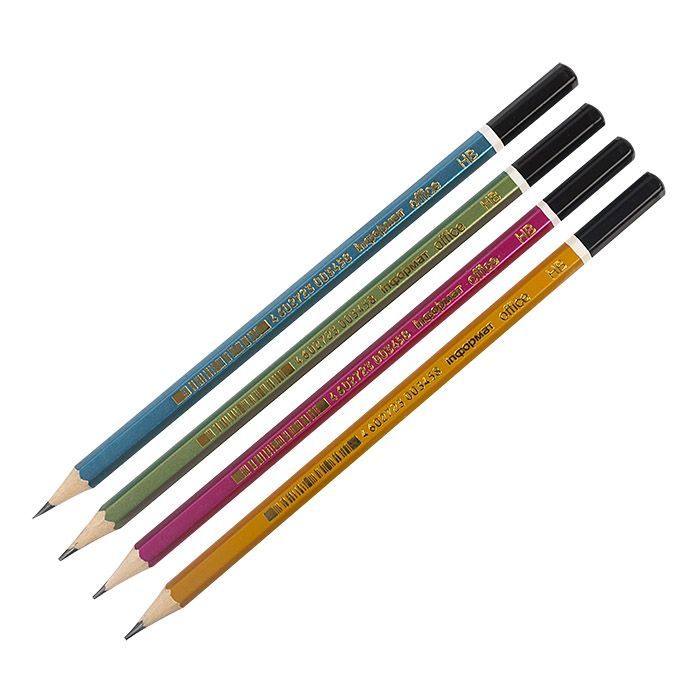 Карандаш чернографитный заточенный шестигранный. Корпус цвета металлик с окрашенным наконечником. Цвета в ассортименте.
