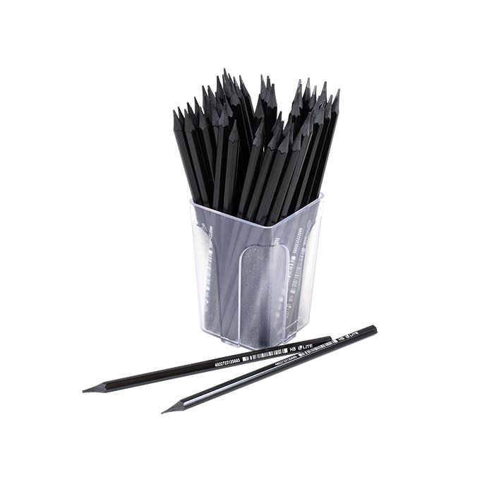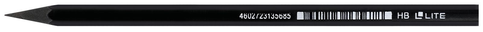 Карандаш пластиковый LITE. Поставляется заточенным. Чтобы грифели карандашей не ломались внутри корпуса, применяется специальная технология дополнительного проклеивания стержня специальной клеевой системой. Карандаш легко точится и не крошится. Твердость грифеля — НВ.