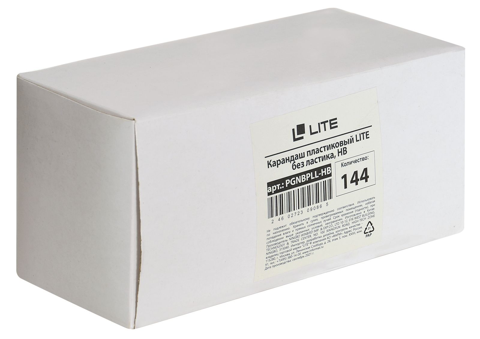 Карандаш пластиковый LITE без ластика. Поставляется заточенным. Чтобы грифели карандашей не ломались внутри корпуса, применяется специальная технология дополнительного проклеивания стержня специальной клеевой системой. Карандаш легко точится и не крошится. Твердость грифеля — НВ.