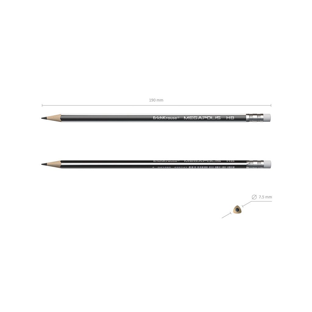 Эргономичный трехгранный карандаш с ластиком из отборной древесины, твердость НВ. Специальная пропитка древесины и сплошная проклейка грифеля обеспечивает высокую ударопрочность. Мягкая древесина и идеальная центровка грифеля гарантируют легкую заточку с экономным расходом карандаша. Грифель диаметром 2.2 мм не царапает бумагу и не крошится. Ластик карандаша средней жесткости изготовлен из экологически чистого и гипоаллергенного материала термопластичной резины (TPR). Не содержит ПВХ. Длина 188 мм.