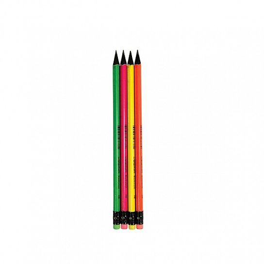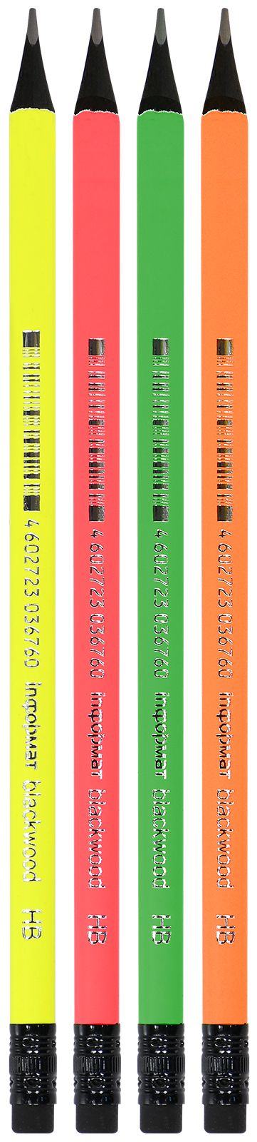 Карандаш чернографитный из пород черного дерева BLACKWOOD. Цвет корпуса: ярко-зеленый, ярко-салатовый, ярко-розовы, ярко-оранжевый. Ластик — черный, соответствует цвету дерева.