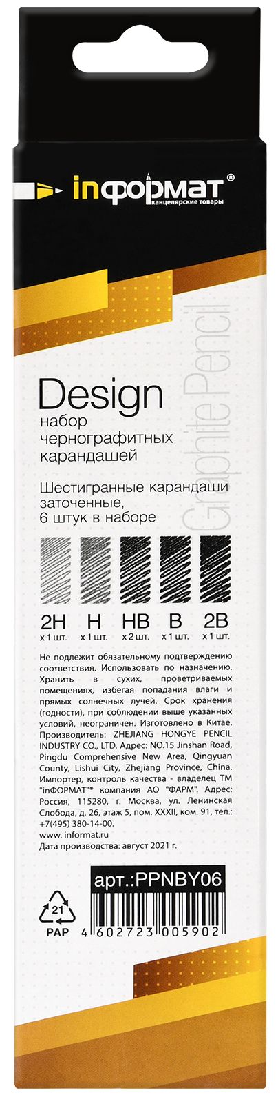 | Набор карандашей содержит: | 2В-2Н |