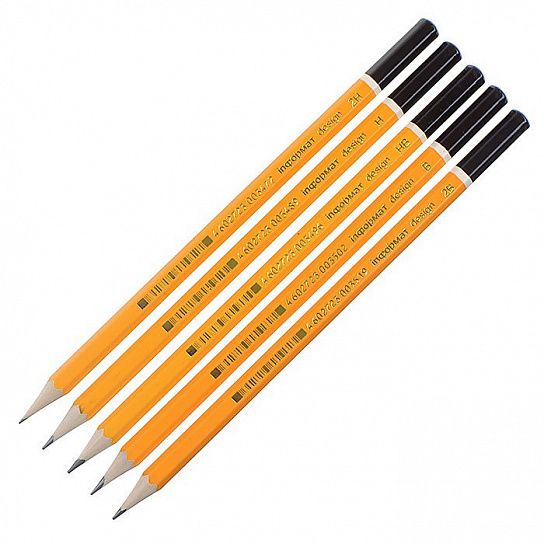 Набор чернографитных шестигранных заточенных карандашей. Карандаши предназначены для графических и художественных работ. В наборе карандаши различной градации твердости.