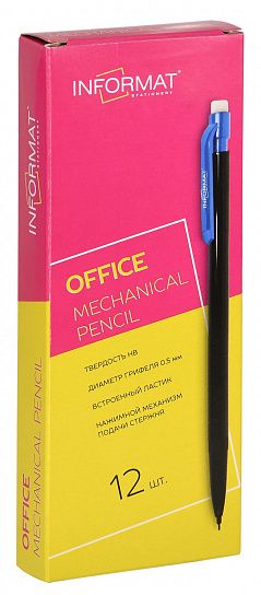 У механического карандаша INFORMAT ОФИС 0,5 мм с ластиком пластиковый корпус с фактурной вставкой в месте захвата предотвращает скольжение пальцев во время письма. Автоматическая подача грифеля.