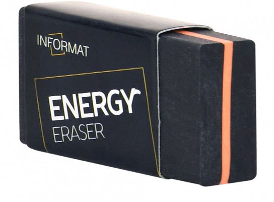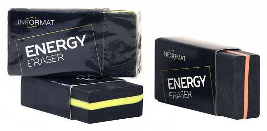 Ластик INFORMAT серии ENERGY эффективно удаляет надписи, выполненные чернографитными карандашами. Благодаря своей мягкой структуре обеспечивает комфортное и легкое стирание, не повреждая бумагу и не оставляя следов пыли.