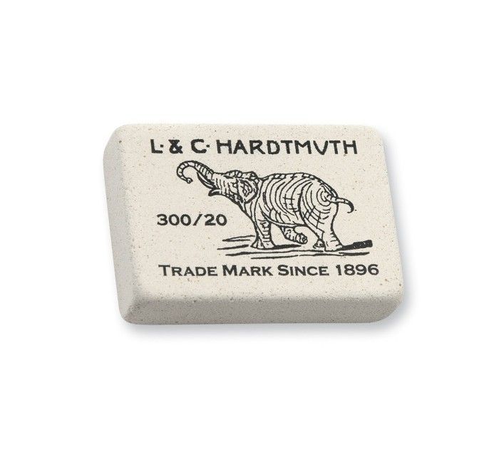 Известный ластик со слоном. Изготовлен из каучука, универсален. Отлично стирает линии графитовых карандашей любой твердости.