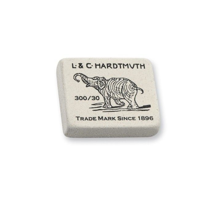 Известный ластик со слоном. Изготовлен из каучука, универсален. Отлично стирает линии графитовых карандашей любой твердости.