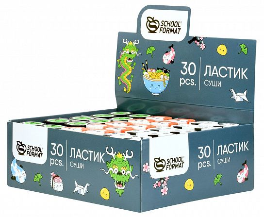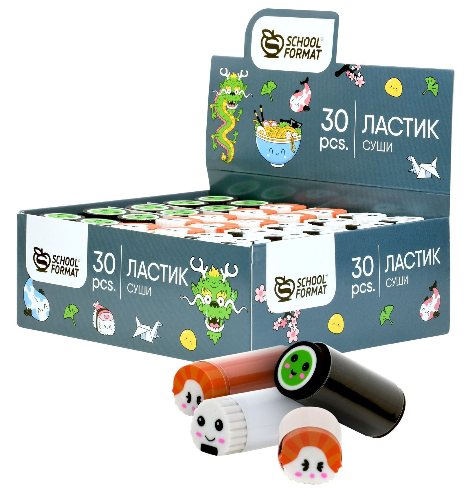 Яркие сочные цвета, оригинальная форма - все это ластики "СУШИ", которые подарят улыбку каждому. Красочный и милый дизайн с мордашками сделает учебный процесс веселее, а необычная форма позволит стереть даже мелкие детали.Ассорти из 3 дизайнов в стильном картонном дисплее по 30 шт.