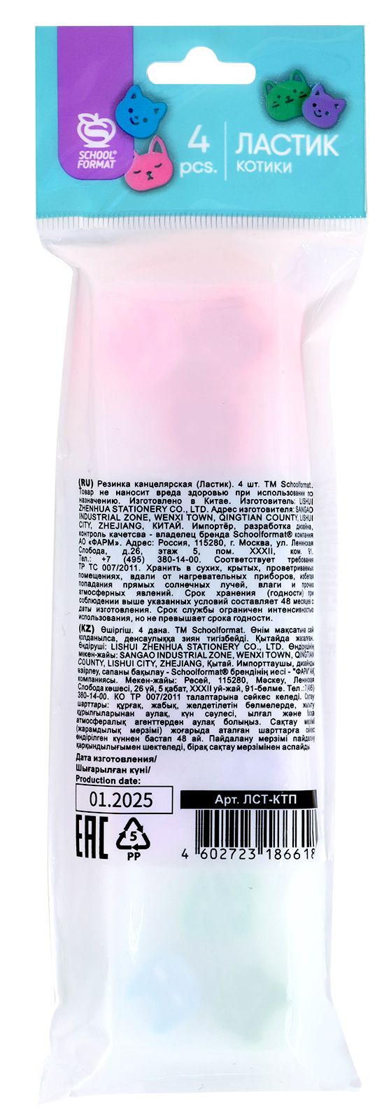 Необычное сочетание прозрачного и цветного ластиков, которое привлечет внимание любого. Особенно если они с котиками!