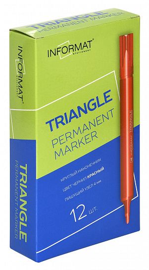 Простой и надежный маркер TRIANGLE для повседневного использования. Водостойкие чернила. Спиртовая основа. Прекрасно пишет на любых видах материалов: бумаге, картоне, дереве, металле, пластмассе, стекле, керамике. Пишущий узел 4 мм устойчив к деформации.
