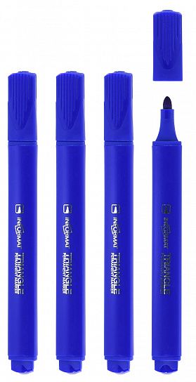Простой и надежный маркер TRIANGLE для повседневного использования. Водостойкие чернила. Спиртовая основа. Прекрасно пишет на любых видах материалов: бумаге, картоне, дереве, металле, пластмассе, стекле, керамике. Пишущий узел 4 мм устойчив к деформации.