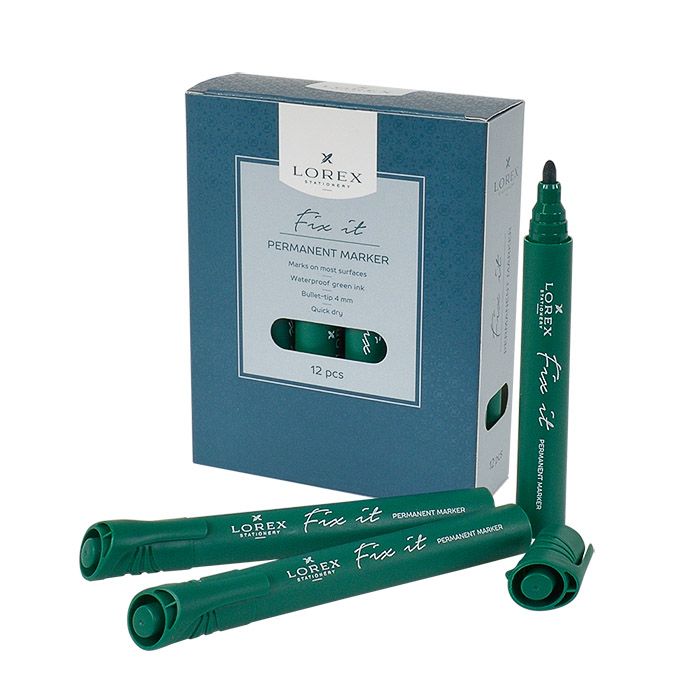 Маркер перманентный FIX IT — это выбор профессионалов. Водостойкие быстросохнущие чернила. Спиртовая основа. Прекрасно пишет на любых поверхностях: бумаге, картоне, дереве, металле, пластмассе, стекле, керамике.Классическая форма корпуса. Пишущий узел с круглым наконечником, устойчив к деформации. Диаметр пишущего узла — 4 мм.
