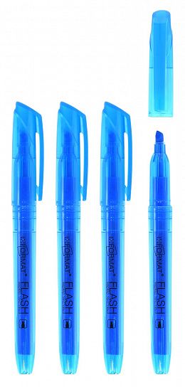 Маркер FLASH предназначен для выделения текста на всех видах бумаги, в том числе на бумаге для факса и пишущих машин. Пишущий наконечник устойчив к деформации, мягко скользит по бумаге. Круглая форма корпуса. Клиновидной формы наконечник позволяет провести линию толщиной от 1 до 4 мм.