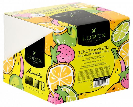 Маркер текстовый LOREX Aromatic RICH FRUIT.NEON 1—3,5 мм, скошенный, 4 цвета в дисплее