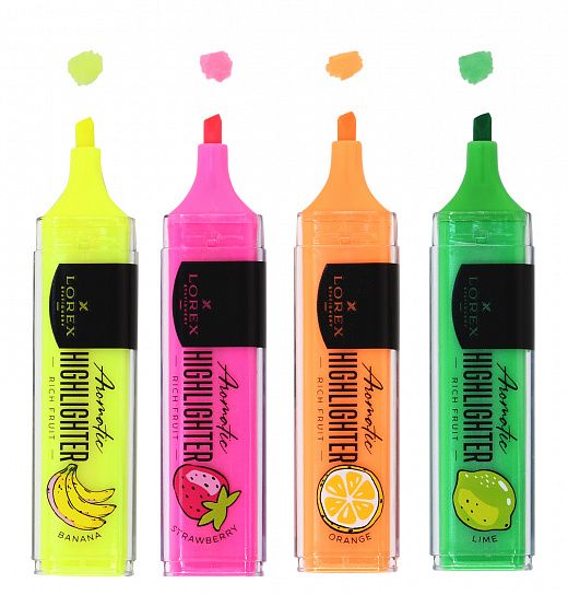 Текстмаркеры LOREX RICH FRUIT — четыре вкусных ярких ароматизированных цвета. Подходят для выделения в тексте, ежедневнике, тетради. Сделают акценты на самые важные моменты.