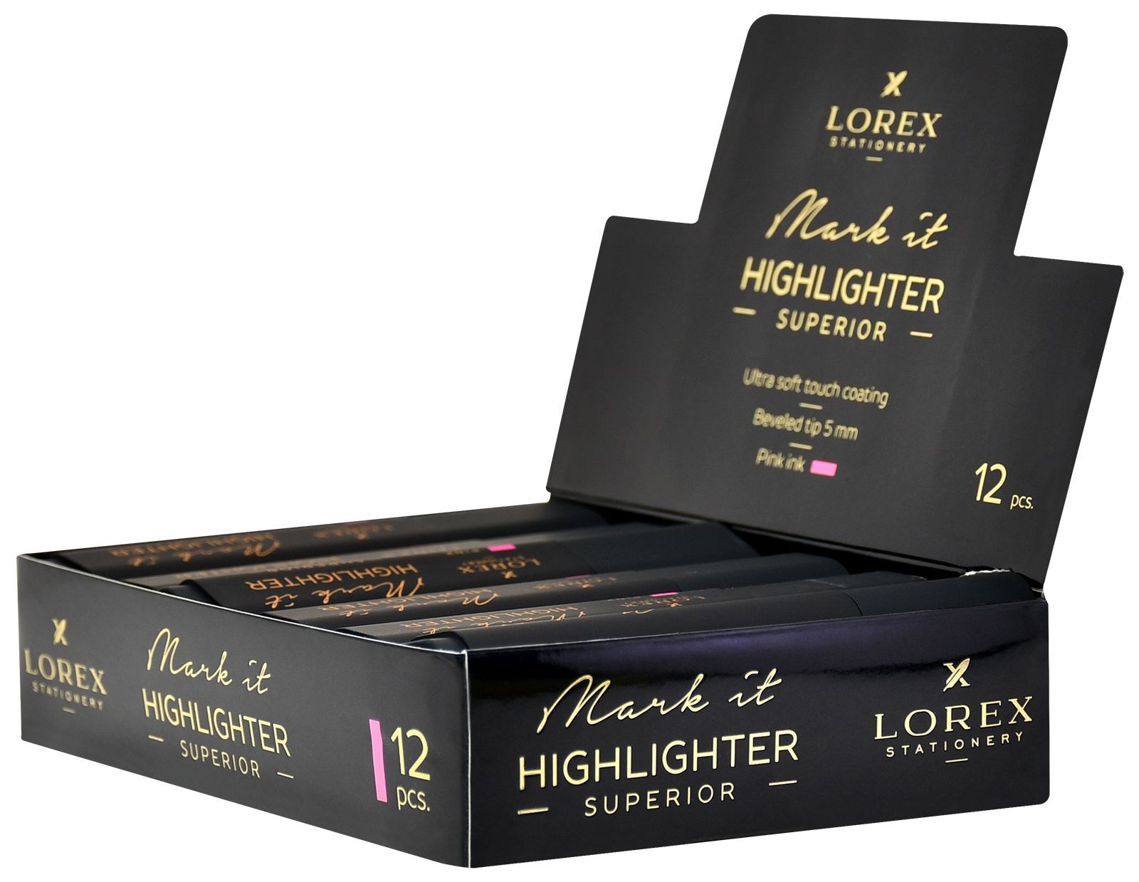 Текстмаркеры LOREX Mark it серии SUPERIOR – это розовый неоновый цвет в стильном корпусе, выполненного по технологии Ultra soft touch в абсолютно черном оформлении с фольгой цвета золота. Подходит для выделения в тексте, ежедневнике, тетради. Сделает акценты на самые важные моменты. Заглушка колпачка каждого маркера соответствует цвету чернил. Прочный наконечник не западает в корпус и сохраняет форму на протяжении всего срока службы маркера. Скошенный пишущий узел позволяет наносить линии толщиной от 1 до 5 мм.