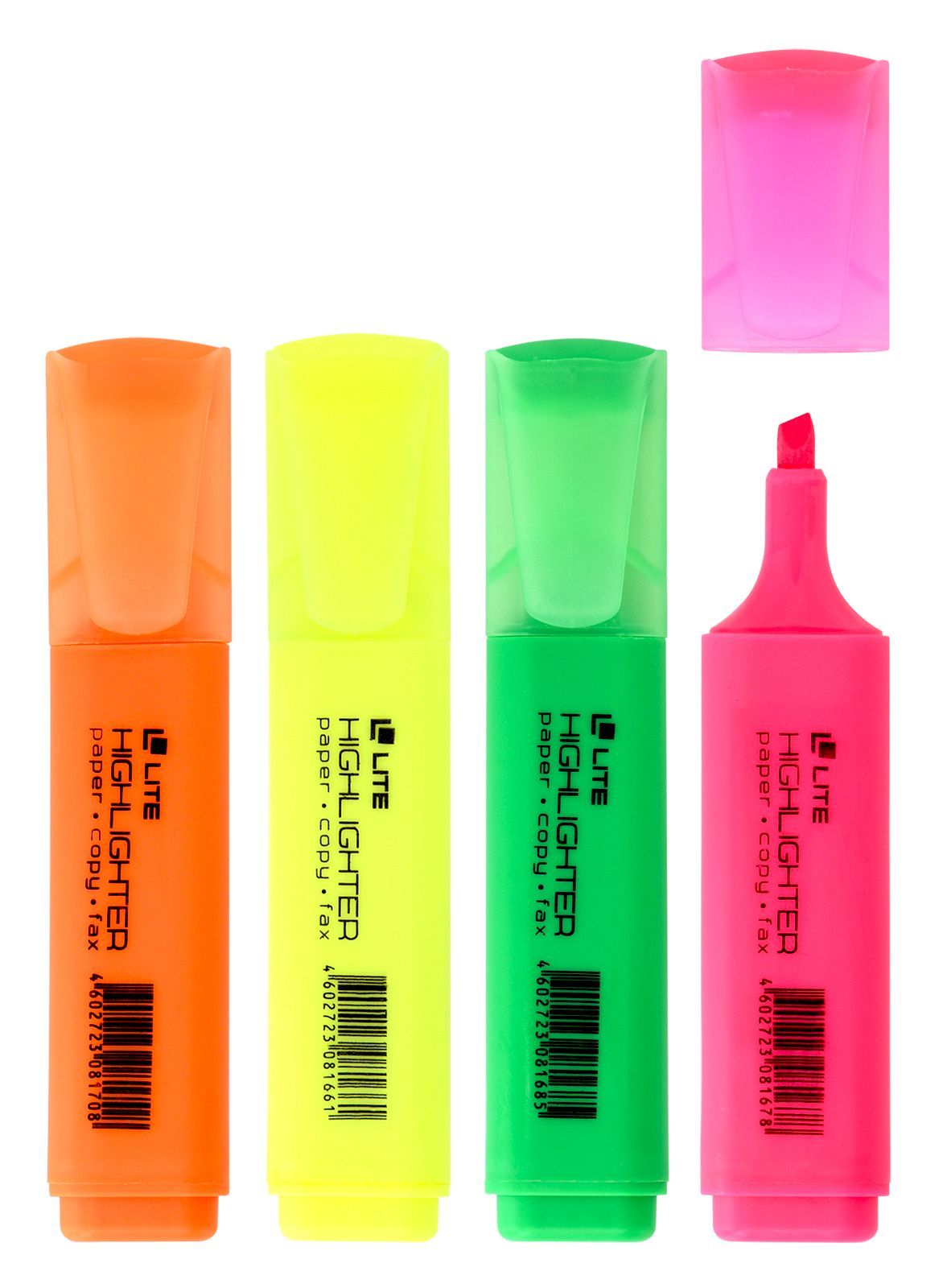Маркеры для выделения текста на всех видах бумаги, в том числе на бумаге для факса и пишущих машин. Корпус гладкий, матовый, пишущий наконечник устойчив к деформации, мягко скользит по бумаге, имеет клиновидную форму. Маркеры позволяют провести линию толщиной от 0,5 до 5 мм.