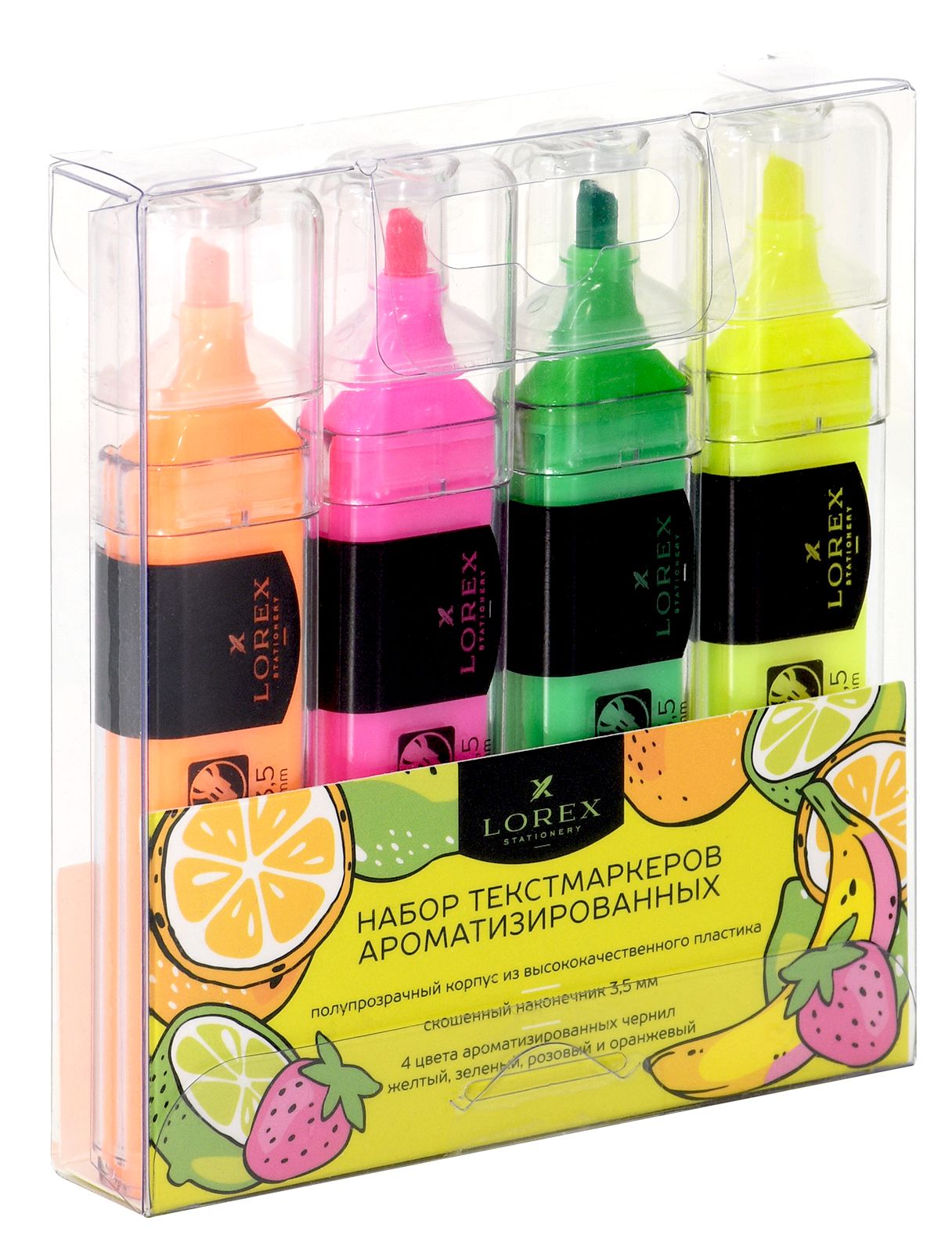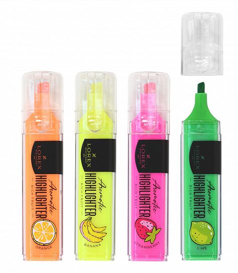 Текстмаркеры LOREX RICH FRUIT — четыре вкусных ярких ароматизированных цвета. Подходят для выделения в тексте, ежедневнике, тетради. Сделают акценты на самые важные моменты.