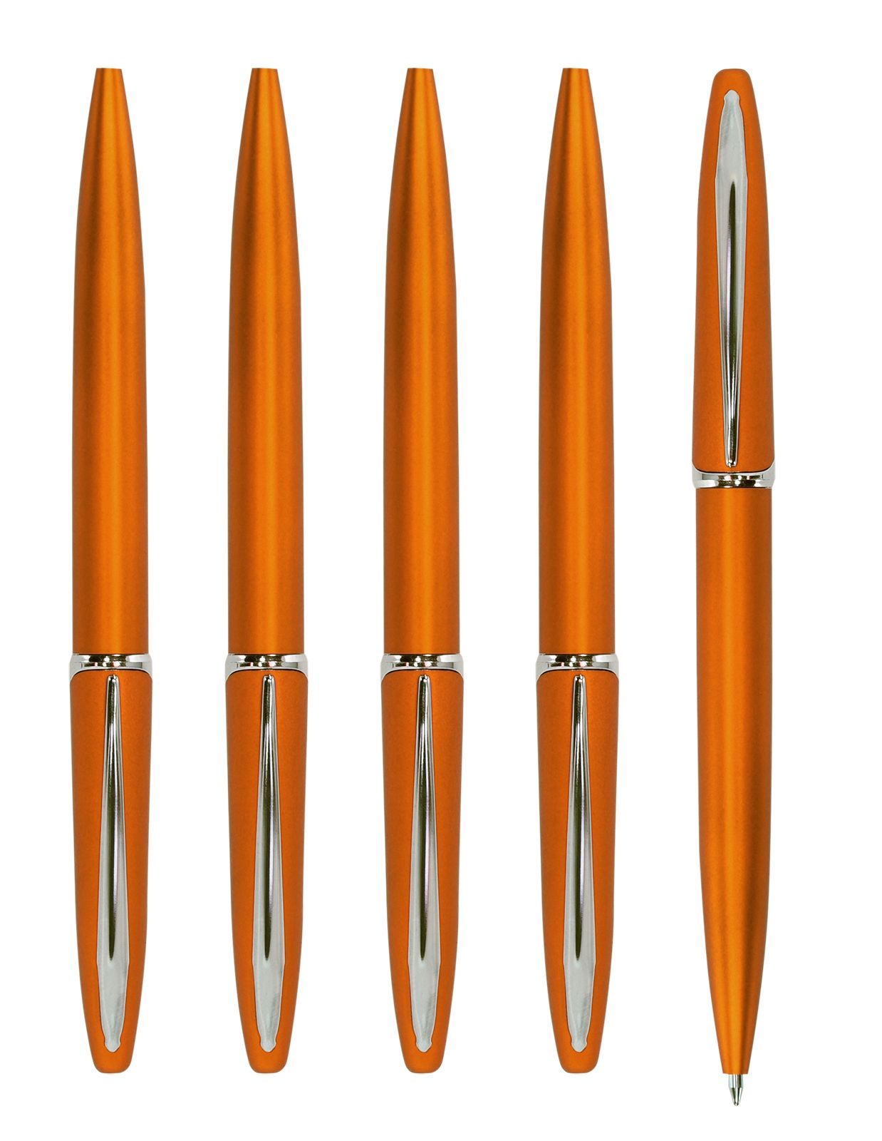 Цвет чернил: синий Механизм автоматической ручки: поворотный Цвет корпуса: оранжевый корпус Толщина линии письма, мм: 0,35 Наличие резинового грипа: Нет Упаковка: картонная коробка Мин. партия и варианты упаковок: 1 / 50 / 1000 -