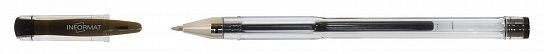 Ручка гелевая INFORMAT - узнаваемый дизайн по доступной цене. Гелевая ручка INFORMAT обеспечивает легкое и мягкое письмо, яркие и насыщенные линии. Чернила водостойкие, быстро высыхают и не размазываются. Прозрачный корпус позволяет контролировать уровень чернил. Цвет чернил — черный, пишущий узел — 0,5 мм, форма наконечника — классический конус. Длина стержня — 127 мм.
