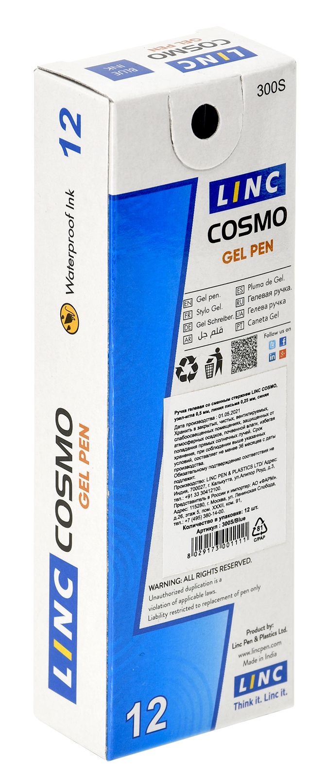 Полупрозрачный пластиковый корпус. Цвета колпачка и наконечника ручки соответствуют цвету чернил. Обеспечивает ровное и гладкое письмо. Водостойкие чернила.Пишущий узел — 0,5 мм. Длина письма — 420 м. Тип пишущего наконечника — игла. Цвет чернил — синий.
