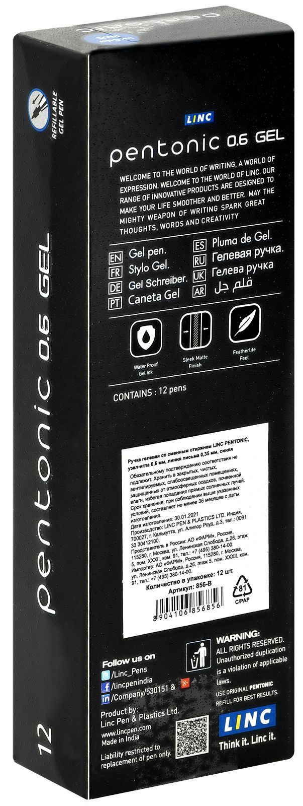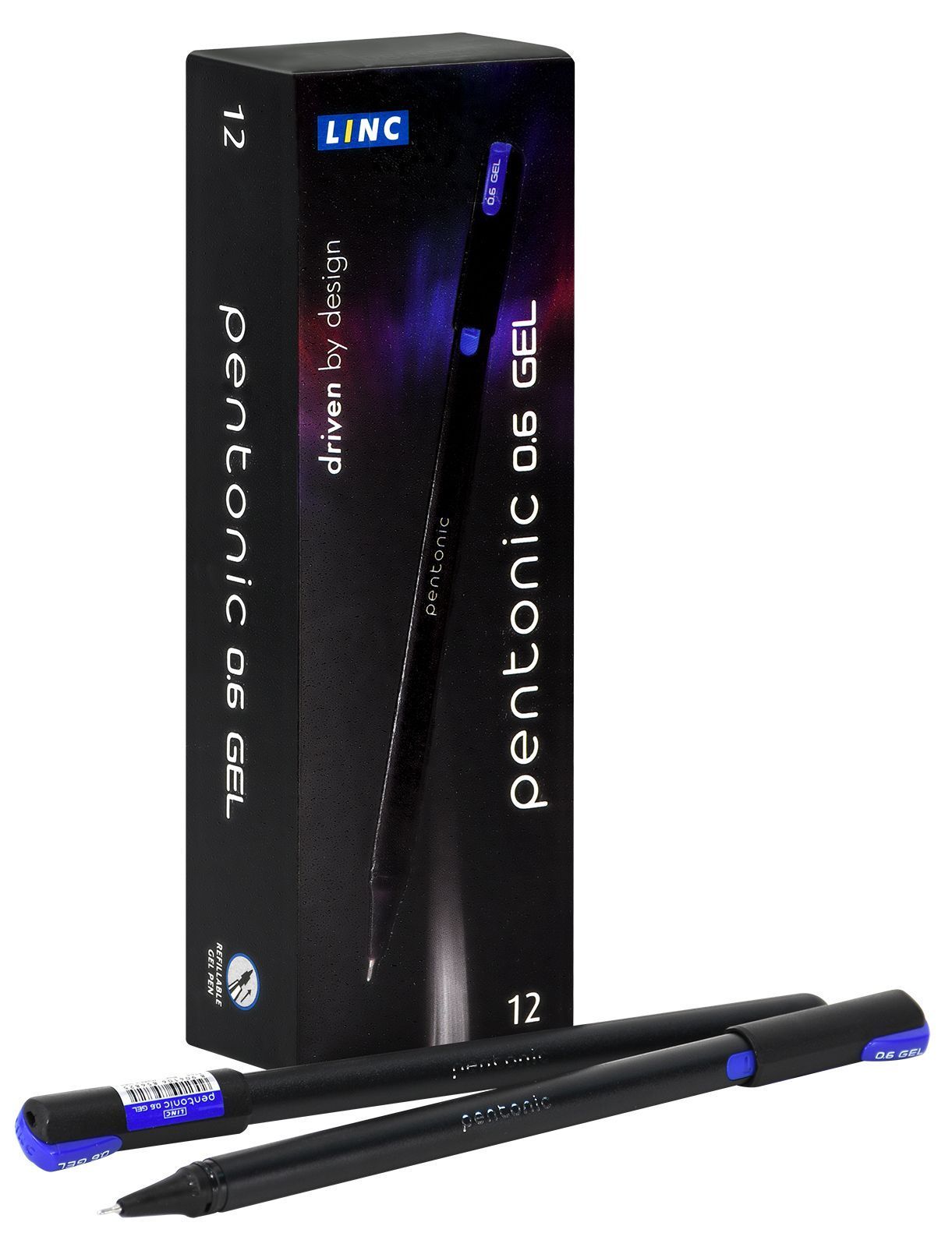 Гелевая ручка PENTONIC с синими чернилами. Толщина пишущего узла — 0,6 мм.