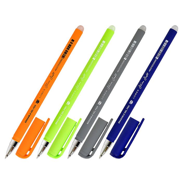 Ручки LOREX со стираемыми чернилами серии Slim Soft — это тонкий элегантный корпус изготовленный по технологии Ultra-soft touch. Чернила обесцвечиваются при нагревании. Достаточно потереть надпись специальным резиновым ластиком, расположенным на конце корпуса ручки, и надпись исчезнет. При корректировке надписи бумага остается невредимой, можно писать поверх стертого. Самые яркие и стильные дизайны на корпусе.Диаметр пишущего узла 0,5 мм. Чернила гелевые, синие.