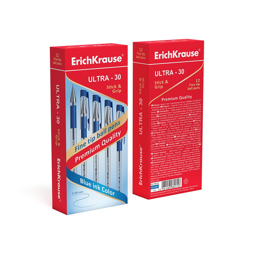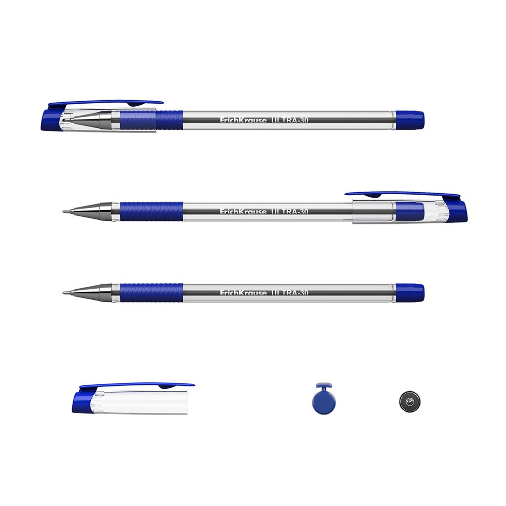 Удобная шариковая ручка выполнена в классическом дизайне. Прозрачный пластиковый корпус позволяет контролировать уровень расхода чернил. Мягкий резиновый грип препятствует скольжению пальцев при письме. Синие чернила, в цвет которым окрашены детали. Пишущий узел – 0,7 мм. Длина стержня – 140 мм.