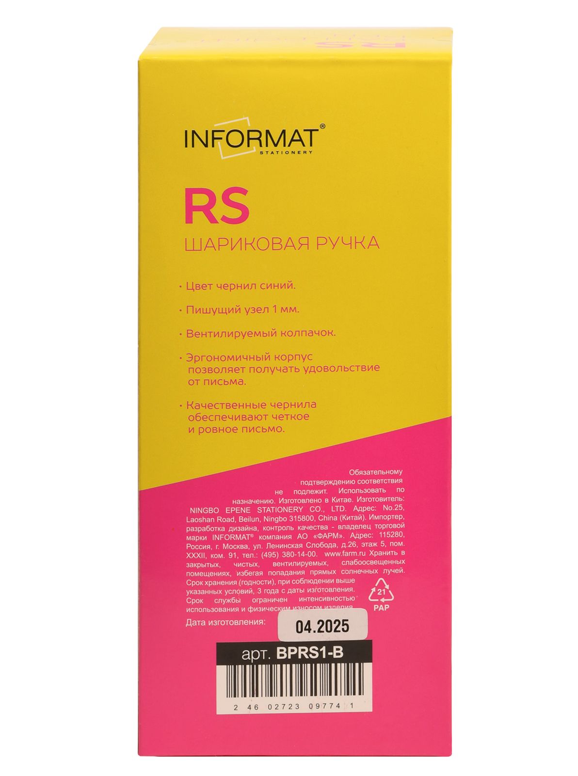 Шариковая ручка INFORMAT RS — практичное решение на каждый день. Благодаря эргономичному корпусу она удобно лежит в руке, а классический синий цвет чернил подходит для большинства задач.
