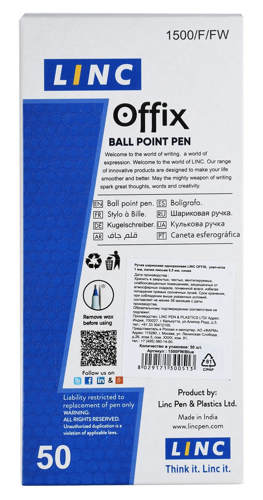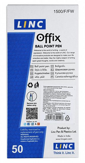 Шариковая ручка OFFIX — ручка ультрамягкого комфортного письма от известного бренда LINC. Имеет корпус из плотного качественного прозрачного пластика с рисунком и колпачком в тон цвета чернил. Пишет легко, мягко и плавно, без напряжения руки, оставляя ровный и четкий оттиск.
